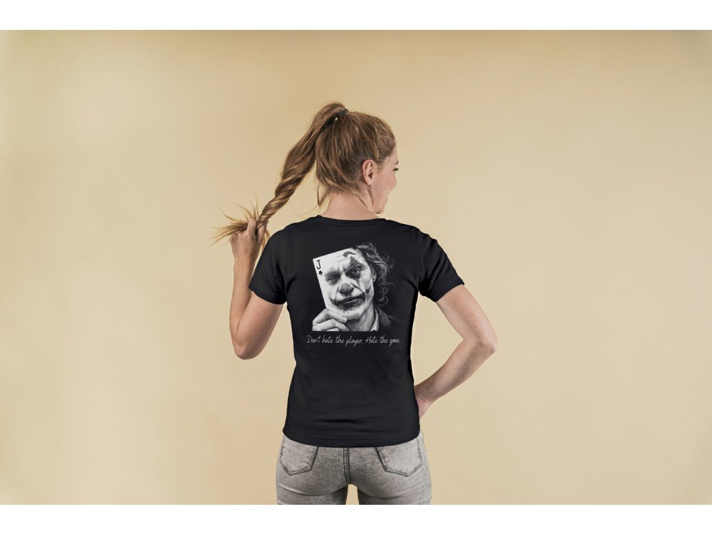 Dámské černé tričko Joker - potisk na zádech. Don´t hate the player. Hate the game.