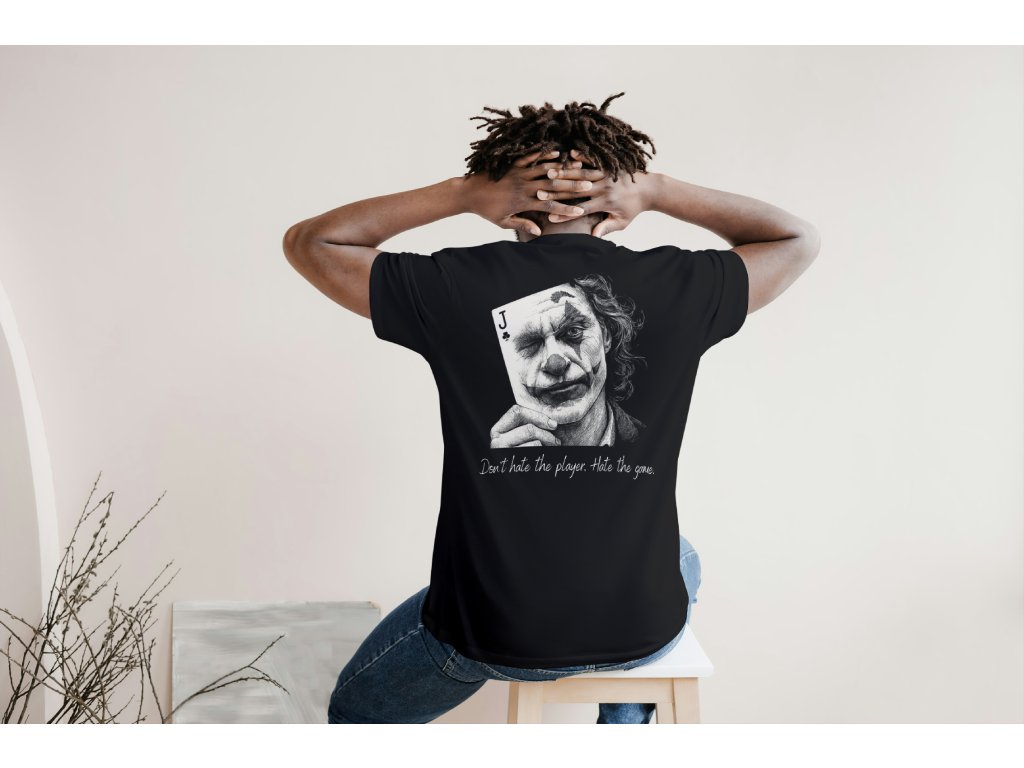 Pánské tričko černé Joker - potisk na zádech. Don´t hate the player. Hate the game