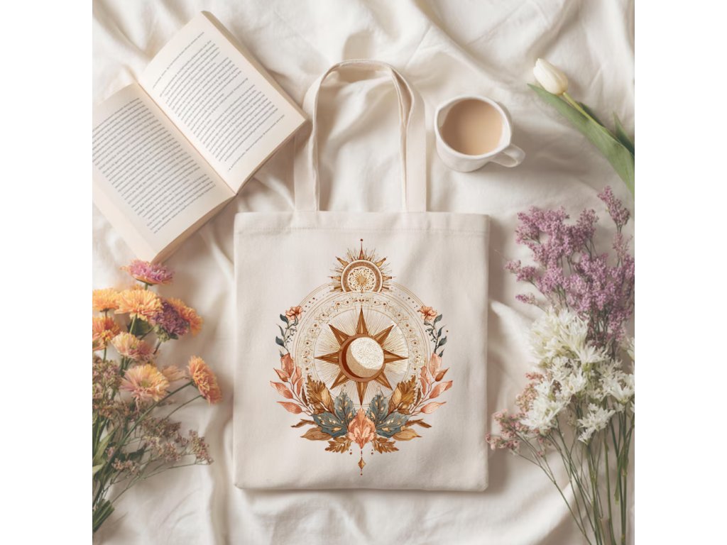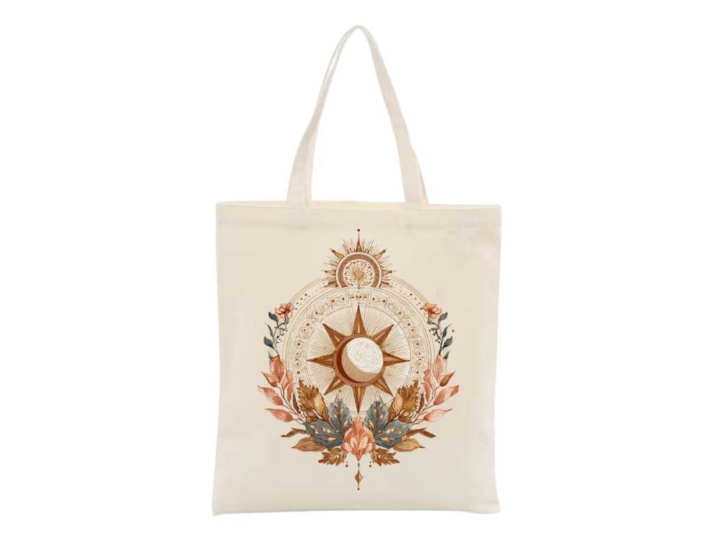 Plátěná taška sluneční rovnováha s Tebou ponese nejen věci, ale i styl a dobrou energii