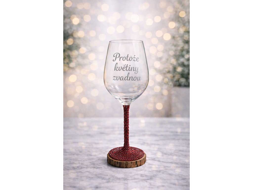 PROTOŽE KVĚTINY ZVADNOU - ručně osázená sklenička na víno - červená