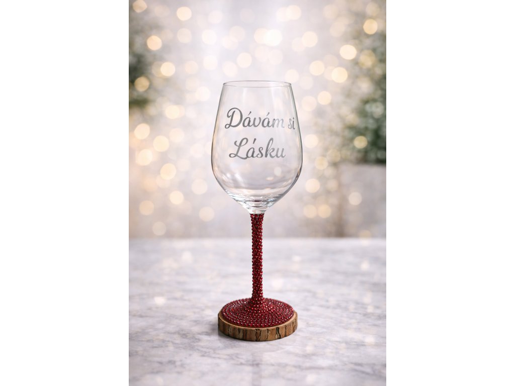 DÁVÁM SI LÁSKU - ručně osázená sklenička na víno - červená